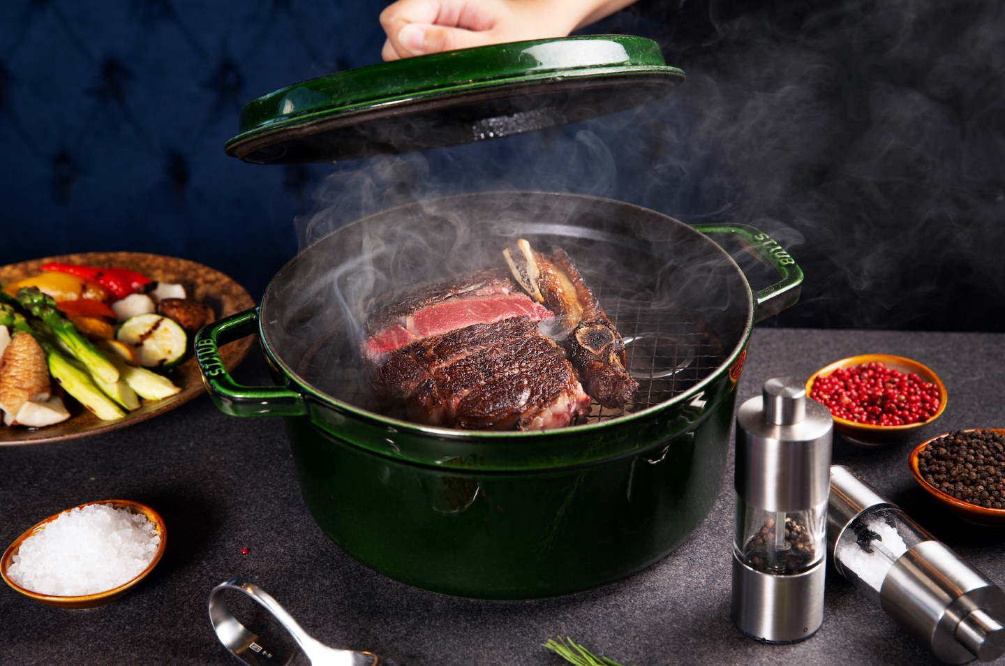 雖非傳統牛排館,INGE’S 卻以「炭火風味」牛排在老饕中口碑盛讚,採正統高溫爐種與桶木煙燻工法,將肉汁緊鎖、疊出煙燻與熟成的層次。菜單曾推出以酒桶木煙燻的美國帶骨肋眼等經典,深夜也設計了在地趣味的「午夜小食」如麻辣滷味,讓外籍旅客一杯一口就能貼近臺北。