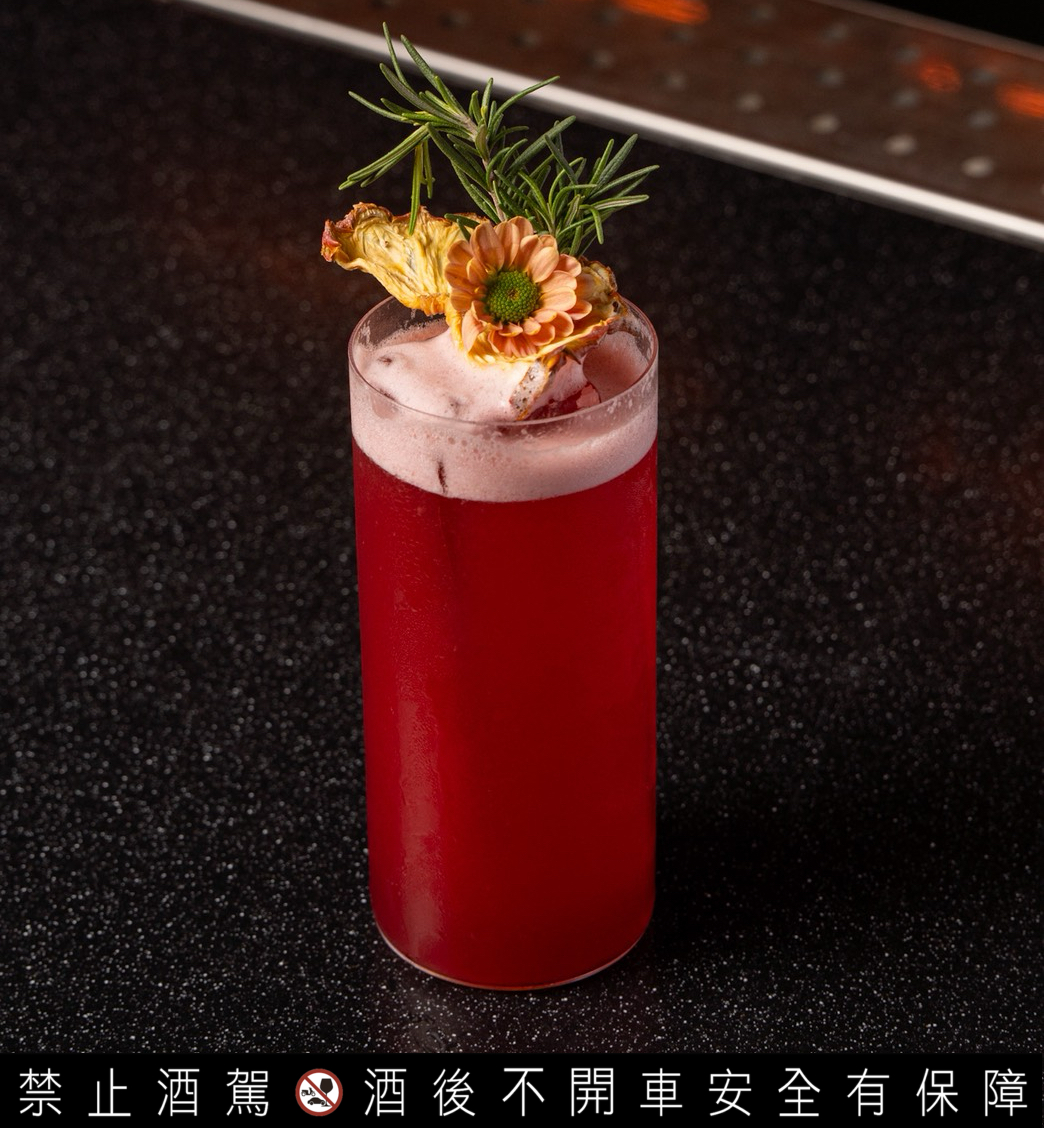 莓果及柑橘果汁搭配甜香荔枝酒,鮮豔色調有如臺灣人的熱情款待。