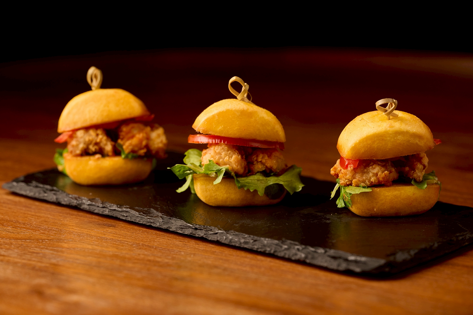 派對體驗離不開美食,晚餐可以先在飯店一樓的 Buttermilk 美式餐廳感受歡聚美食,店內熱銷的阿嬤炸雞、炸雞漢堡、肋眼牛排都是老饕必吃。吃飽後再沿著側門下到B1小酌。Mud Bar 的吧食以分享小點為主,像是把阿嬤炸雞做成迷你漢堡、或搭配雞肝醬拼盤(堅果、莓果、麵包),剛好接上調酒的節奏;館內也不時推出雙人分享餐,讓住客可以將夜晚的行程安排得輕鬆愜意。